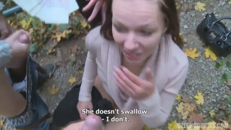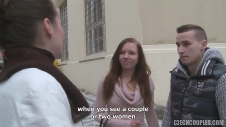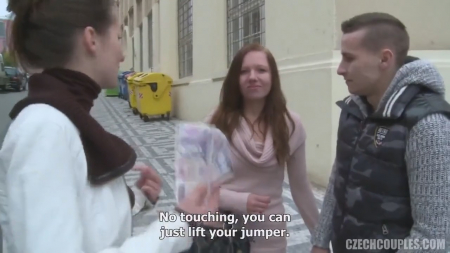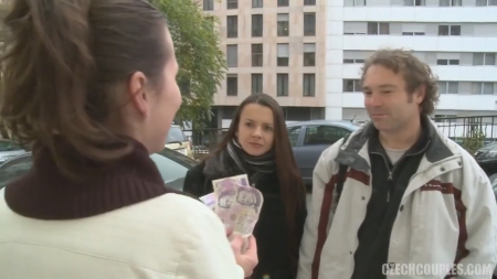 Ведущая со своим парнем искали на жопу приключений и стали докапываться до прохожих, преимущественно которые были похожи на пару. Дело происходило в Чехии, поэтому шанс получить в лицо там сильно меньше, чем у нас. Поэтому девчонке было все позволено, и она напрямую спрашивала парочки, используют ли они в сексе игрушки и не хотели бы они за деньги поебаться на камеру для их "проекта". Первая парочка галантно их послала в задницу, а вот вторая... согласилась. При этом чувак смотрел, как его девушка сосет у другого, но двадцать тысяч есть двадцать тысяч.