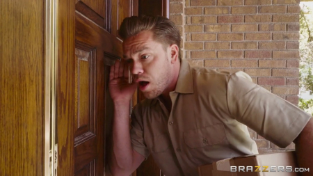 Молодая жена опять потратила все деньги с его карты, поэтому она будет сурово наказана. Но семейное физическое насилие - это слишком просто - супруг решил просто привязать ее дома и не трахать целый месяц. И это почти сработало - ради секса она была готова на все. Но сегодня, как обычно, она просто извивалась на лестнице, как мартовская кошка, как в дверь позвонил курьер. Не думая не минуты, она схватила его за хуй и начала его сосать, а после резко отдалась ему в жопу, чтобы он трахал ее целых полчаса, пока не придет муж и не поймет, что он здорово просчитался.
