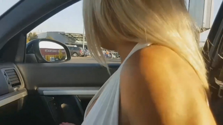 Не то чтобы блондинке было скучно на пассажирском сидении, просто обстановка и настроение были такие игривые, что она почти сразу спалила перед водителем, что она совершенно не носит трусики. Закинув ногу с туфлей на торпеду в салоне, она явно показала свою бритую киску, попросив помастурбировать ей рукой. И сама она, конечно, в долгу не осталась - быстренько изогнулась и окунулась головой под руль, где на месте ее уже ждал водительский стояк. Отчаянно собрав всю сперму в рот, блонда вышла из машины, чтобы смачно выплюнуть белок на асфальт, а затем сесть обратно.