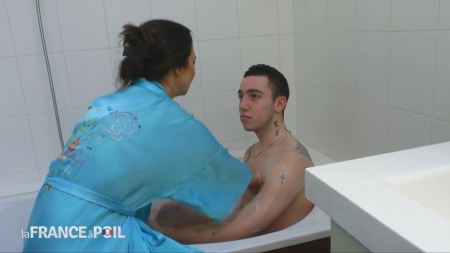 Молодой человек моется в ванной, он не закрывает дверь потому, что живет только с мамой, которая обычно видит занятую ванную комнату, как минимум, по выключателю. Но сегодня, занимаясь бытом, она не заметила, что тут занято и вошла чтобы убрать полотенца в шкафчик под раковину. Парень начал ругаться на глупую мать, ведь нельзя заходить, он же голый. На это взрослая француженка ответила легкой иронией: сынуля, я что, письку твою что-ли не видела. После этого она присела на краешек белоснежной ванны и намылила его руки и тело, постепенно перейдя пониже. Член тоже нужно помыть, поэтому, запустив руки под воду, дама стала теребить его пенис, отчего тот стал твердеть. Не пропадать же зря стояку любимого сынули - милф скинула халат, оставшись в нижнем белье, взяла хуй в рот и начала сосать. Обоим родственникам захотелось продолжения и тогда женщина достала презерватив, открыв его зубами, надела на хуй наследника и наградила обоих анальным сексом, показав хорошую форму в немалые годы.