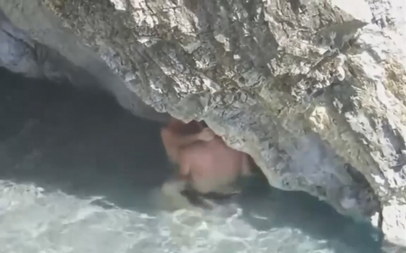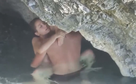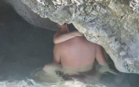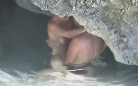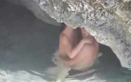 Казалось бы - идеальное место, где можно спокойно заняться сексом, не сильно переживая быть обнаруженным. Но везде найдется прохожий с камерой, с удовольствием записывающий секс незнакомцев. Девушка плавала без лифчика и это первая ошибка, на которую обратил внимание случайный отдыхающий. Далее он просто встал поодаль, делая вид, что смотрит в другую сторону, ожидая развития событий там - внизу. Долго ждать не пришлось, парень приспустил сисястенькой подружке трусики и, как кролик, начал быстренько ее ебать, кончив от сильного возбуждения слишком быстро, чтобы она хоть что-то почувствовала. Кончил он внутрь, поэтому даме сердца еще пришлось остаться и вымывать из влагалища семя засранца.