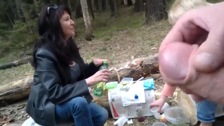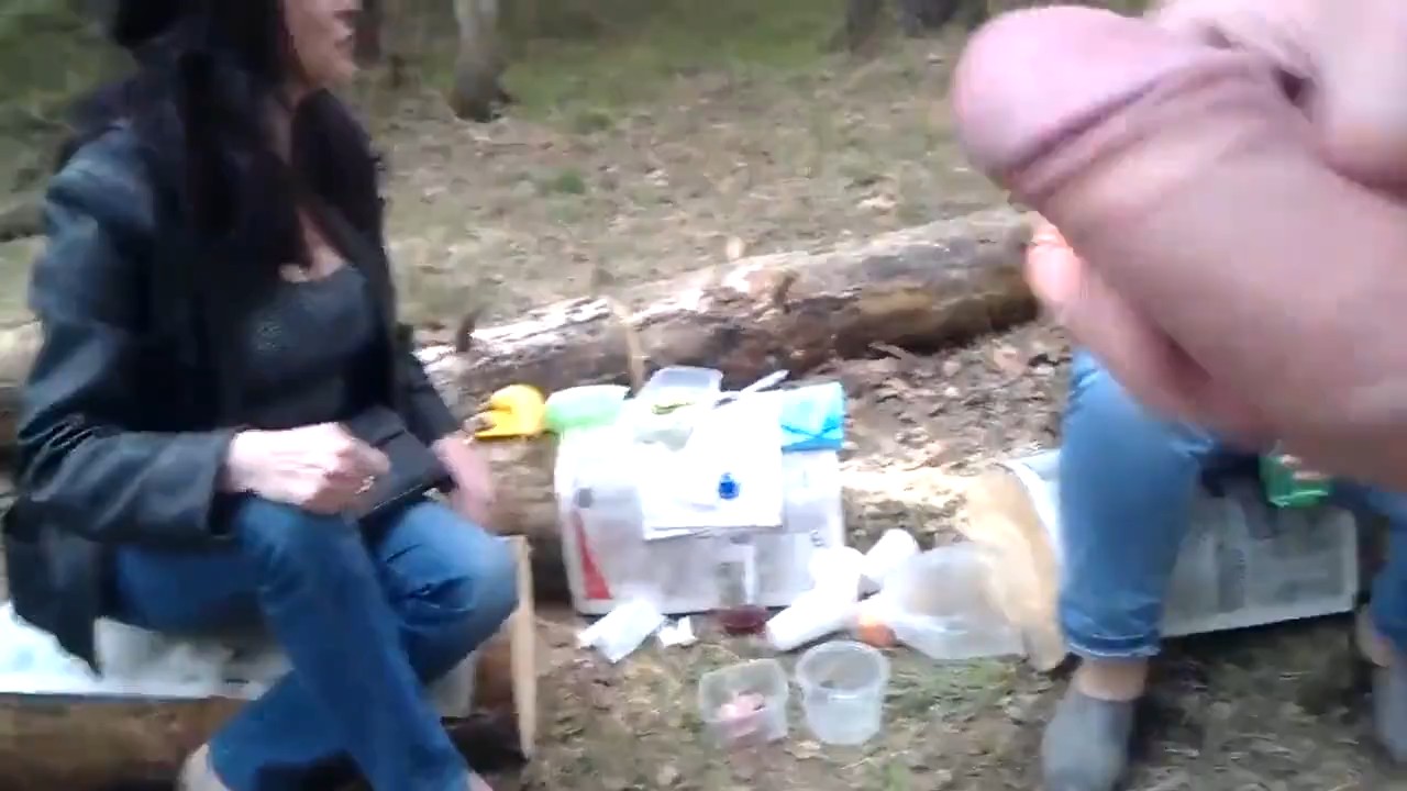 Так получилось, что на пикник мужчина отправился с коллегами. Свежий воздух подействовал на "героя" лучше любого возбудителя. Но поскольку женщины не очень спешили подрочить парню, ему пришлось удовлетворять себя самому (к тому же, он умудрился снять мастурбацию крупным планом на камеру).