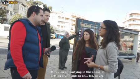 Большая часть называющих себя пикаперами - чушки, которые ничего не смыслят в съеме девушек. Когда не получается разговорить незнакомку, значит пора доставать бабки, побольше денег создадут искру в глазах продажных давалок, готовых ради выгоды заняться сексом с двумя неизвестными парнями из WTF Pass, один из которых пухлый дядя, много старше 23-летней белобрысой кобылы, второй парень поприличней и помоложе. Так вот, обычные девушки, отдыхающие у берегов Испании отказались давать обширное интервью с продолжением, но студентка из ближайшего городка, обозначившая себя туристкой, оказалась не так застенчива. Сперва девочку отымели на свежем воздухе, а потом привезли на хату, где четко прошлись по важным дыркам блонды.