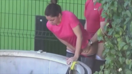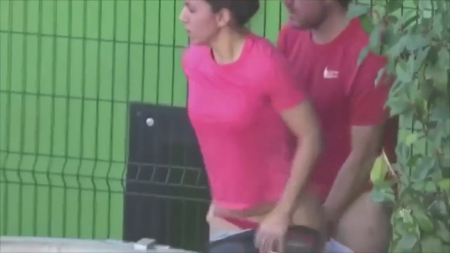 Для проходимцев не нашлось лучше места, кроме как спрятаться за мусорку. Круглый контейнер не спас от зоркого телефона с неплохим зумом обычного гражданина, успевшего включить заранее съемку, молодчага сразу догадался чего рыщут незнакомцы под окнами. Буквально минуты хватило, а оно и понятно, когда очень хочется, процесс укорачивается в разы. Телке вообще поебать на всех, она громко стонет, что слышно через дорогу за немного распахнутыми окнами.
