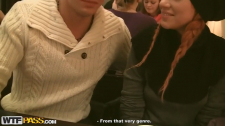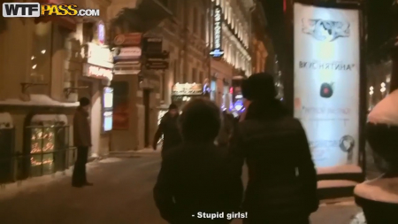 Теплая зима, поэтому прохожие такие радостные и общительные, особенно две девушки, к которым подошли парни с камерой. Они обратили внимание на великолепную попку одной из них, облаченную в леггинсы, совсем не предназначенные для данного времени года. Она даже ответила "да", когда ей предложили секс, но подруга быстренько увела общительную спутницу. Следующая пара девчонок тоже остановилась дать интервью, но дальше дело не зашло, поэтому поиск слабой на передок продолжился. На углу дома по Невскому проспекту стояла еще жертва, явно кого-то ожидавшая. Себя она сперва назвала себя Тина, но вскоре в кафе, куда пригласили рыженькую красотку, назвала настоящее имя. Маша, как Маша и медведи, легка на общение и согласилась рассказать о своем парне с интимными подробностями. Далее было предложение денег за показ сисек и последующее продолжение за более крупную сумму, которую телочка не отвергла, пройдя с малознакомыми друзьями в туалет забегаловки. На удивление, в этот раз все выглядит крайне качественно и ненаигранно.