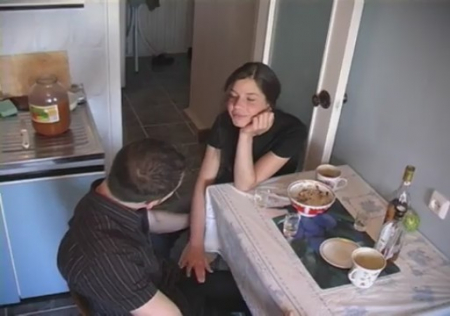 Симпатичная русская девчонка совсем еще юная студентка, отмечающая совершеннолетие в компании старшего собрата по разуму. Вместе они обедают и отмечают столь значительный праздник за кухонным столом. Выпив пару стопок крепкого алкоголя, ударившего в голову дурной красотули, ребята захотели порезвиться. Молодой человек вытащил член и подсунул его милахе, которой ничего не оставалось иного, кроме как начать умеючи обсасывать (а это уже другой вопрос, где девочка и когда так научилась), а после раздвинуть ножки лежа на столе. Парень попробовал потыкать головку в попку, но она еще не готова к подобному экспириенсу, поэтому он просто кончил на мордочку.