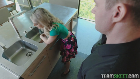 Пришло время завести экономку. Она должна убираться в доме, иногда готовить завтраки и обеды, заниматься стиркой, сбором посуды со столов по этажам. Когда девушка появилась на пороге, хозяин чуть не упал: перед ним стояла абсолютно низкорослая блондинка с большими горящими глазами, веселая и светящаяся как луговая ромашка. Первые же задания оказались провалены из-за маленького роста и каждый раз пришлось просить помощи у достаточно высокого парня. Пару раз он стерпел, но после стал воротить морду, что не могла не заметить прислуга. Пришлось ей вновь доказывать, что маленького роста девушки очень даже ничего, а средний член кажется огромным, что придает уверенности мужчине.