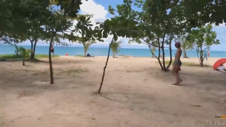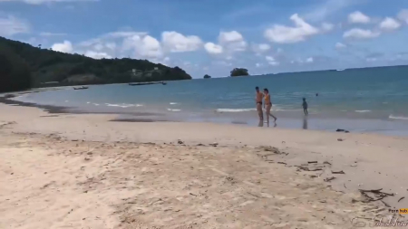 Закрыв номер 4003, пара отправилась в сторону пляжа. Там немало людей, но если забрести подальше, то можно заметить, что ленивые гости курорта не заходят далеко, а гуляют и загорают только возле отеля. В начале нас ждет короткая экскурсия, крутая черепаха, шикарные виды зеленых растений, голубого неба и много песка. Спутнице оператора уже не терпится прикормить пизденку его хуем прямо на берегу шикарного пляжа. Где-то вдалеке ходят другие отдыхающие, а этим плевать, зато какие шикарные кадры получаются, когда вагина словно какой-то зверек жует банан. Выглядит, как минимум, забавно - самое интересное в конце.