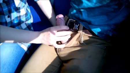 Ребята ехали поздним вечером в электричке и симпатичная девушка захотела сделать другу приятное. Она расстегнула парню ширинку, через нее вытащила член и взяла в рот. И не смотря на то, что электричка была пустая, любовники сильно рисковали быть застигнутыми в врасплох. Но это придавало некую остроту ощущений.