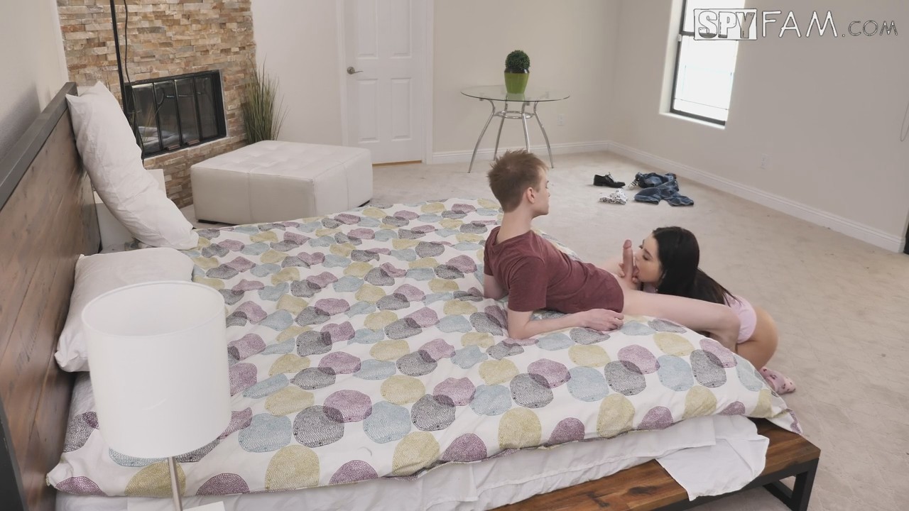 Парнишка возвращался с прогулки. Перед самым домом он вспомнил, что забыл ключи, но окно обычно открыто, поэтому решил пролезть через него и застрял. Вызволиться чувак сам не смог, поэтому пришлось звонить сводной сестре, не поверившей в увиденное. Она стянула с худощавого братика штаны и засняла голым, начав после этого делать минет, тем самым пытаясь унизить его. Кто ж так унижает-то? В течение нескольких минут брюнетка попрыгала на хуе, только после этого помогла освободиться из оков окна, уведя жертву в спальню, где любовники продолжили соитие, попав на множество камер, расставленных для безопасности большой резиденции.