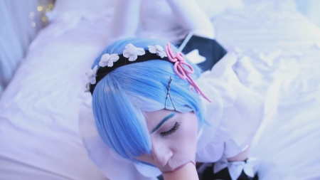 Добро пожаловать домой, хозяин. Я хочу для вас помастурбировать, после чего взять в рот ваш толстый член. Он такой крепки и желанный, жду не дождусь, когда смогу ощутить у себя во рту его плоть. Симпатичная анимешница в синем парике и костюме как у персонажа компьютерной игры легла на спину и сдвинула полосатые морские трусики в сторону, поласкав киску пальчиками. Голубоглазая няшка не выдержала и стала сосать резиновый хуй, давая возможность почувствовать себя тем самым, к кому обращается героиня. Пенис и правда достаточно большой, конечно меньше, чем его рисуют японские хентаисты.