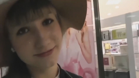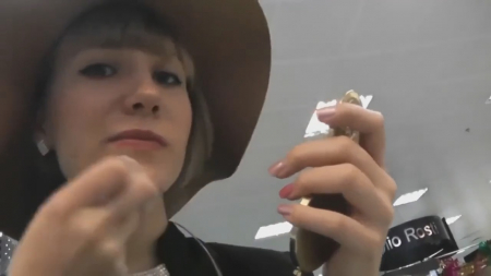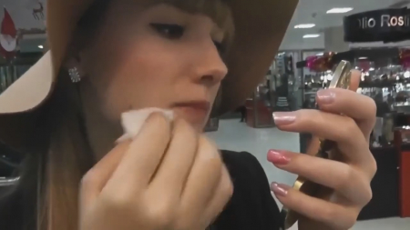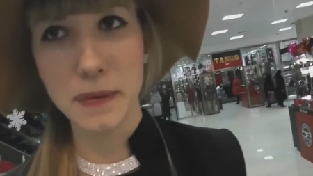 После отсоса пошла прогуляться по магазину со спермой на лице