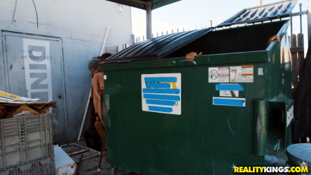 Парочка ковыряется в мусорных баках на улице не просто потому что им нечего есть. Девушка умудрилась случайно обронить в пакет с мусором кольцо, которое пара пошла искать вместе. Здесь так много всего, а маленькое колечко словно иголка в стоге сена, она такая маленькая и вряд ли удастся отыскать блестящую малютку. На земле под кучей хлама валяется бомж с торчащим членом. Шлюшка сразу хотела начать его сосать проснувшемуся бездомному, но тот предупредил, что будет лучше протереть влажной салфеткой, а уже потом приступать к делу. Девушка попросила вести себя потише, так как совсем рядом где-то ковыряется супруг, которому не понравится разочароваться еще больше. Получив сперму на ехидную мордочку, супруга получила от бомжика потерянную вещь, а муж убежал расстраиваться из-за предательства. Худосочная изменщица не видит ничего плохого, поэтому пошла догонять любимого чтобы провести всю оставшуюся жизнь вместе.