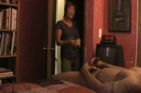 Ничего необычного на первый взгляд на происходит. Чел лежит на кровати и дрочит член. Камера стоит чуть сбоку позади, мало ли кто там что снимает когда остается дома один. Но вот только извращенец знает, что должна подойти недавно нанятая уборщица с вопросами и советами по уходу за предметами мебели. Говорить женщина начала еще до захода в комнату, а как попала внутрь, то вообще забыла зачем приходила. Быстро обговорив моменты с нанимателем, она тихонько закрыла за собой дверь, не отрывая взгляда от эрегированного пениса в руке парня.