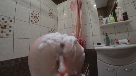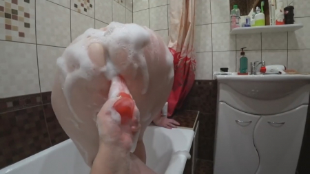 Девушка с камерой на голове зашла к сожительнице в ванную комнату. Моющаяся сразу отхватила комплимент за большие сиськи, которые она предложила подруге намылить. Та с удовольствием согласилась, продолжая увлекательную беседу и делая толстые дойки красными. Следом дошла очередь и до задницы, а потом пышка попросила трахнуть ее длинным фаллоимитатором, который она спрятала в чужом шкафчике ванной. Чикуле, от чьего лица ведется съемка, осталось только держать рукой самотык и смотреть как намыленная попка прыгает верхом, глубоко вгоняя в сочную вагину.