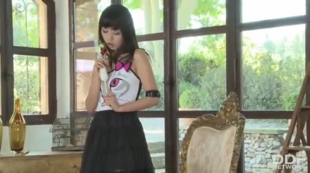 По возвращении домой милая брюнетка с узким вырезом глаз обнаружила сладкий подарок у себя столике. Это было что-то среднее между мороженым с ярко выраженной красной головкой и мужским фаллосом. Она даже не попыталась попробовать презент, а разделась, раздвинула ножки и стала им мастурбировать. Как интересно сохраняются азиатки: на текущий момент Марике 39 лет, а она все еще в прекрасной физической форме, а на теле и лице нет выраженного возраста. Наверное, стоит ничего не поднимать тяжелее члена чтобы так хорошо выглядеть. После испытанного удовольствия японка наконец засунула белую штуковину в рот.