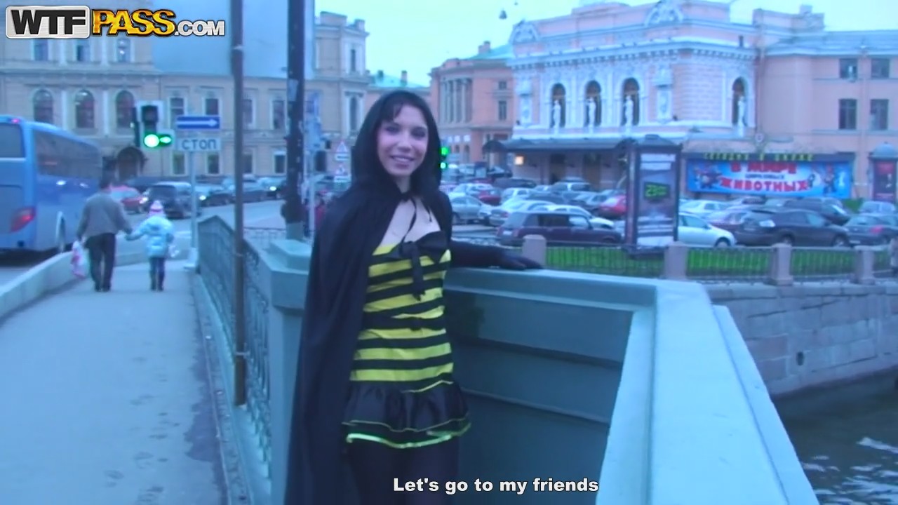 Съемная питерская хата пополнилось в составе. Теперь тут есть хотя бы одна баба, которую поц привел к друзьям. Все ряженые потому, что сегодня отмечается международный праздник хэллоуин, ставший традицией и в бедной России. Пчелка собиралась выпить и просто хорошо провести время в компании, но сразу понимала, что кончится это групповухой. А раз так, то зачем терять время, если можно к ней приступить?! На одну девчонку в костюме набросили трое парней и она второй раз в жизни попробовала двойное проникновение, а умелые руки мастера с легкостью довели влагалище до оргазма оригинальной дрочкой пальцами глубоко внутри.