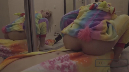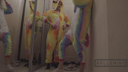 Пьяные ребята пришли к парню домой. Они встретились на улице в пижамах, выполненных под единорогов. Им бы проспаться, но они даже не знают как зовут друг друга. Разувшись и поставив бутылку возле двери, гостья хотела пройти дальше, но персонаж мужского пола ее остановил, предложив посмотреть на его фокус. Он вытащил через ширинку вялого, а блондинка тут же припала его сосать, добавив фразу "ты мне сразу понравился, я только хотела предложить". Молодые люди расположились на полу возле шкафа с зеркалом, где после доведения до состояния стояка, барышня села сверху очком. Дальше только раком и спущенка на язычок.