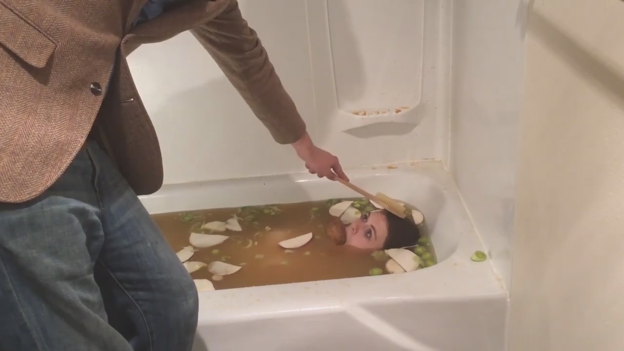 Итак, записывайте рецепт: возьмите 50 килограмм отборной телочки... Ах да, на этом можно остановиться. Обычный вечер британского клерка. Мужчина решил приготовить себе овощной суп, для этого он из холодильника достал почти всю зелень, покрошив ее в кипящую воду. Последним оттуда вытащена замороженная телочка, еле скрывающая улыбку. Ее поставили на стол рачком, дали пожевать пока в дырочках побывают продолговатые продукты. Теперь пора все это заливать отваром. Самым подходящим местом оказалась ванна, там девка с картошкой в зубах завершила свое приготовление по рецепту, которому позавидует сам Гордон Рамзи.