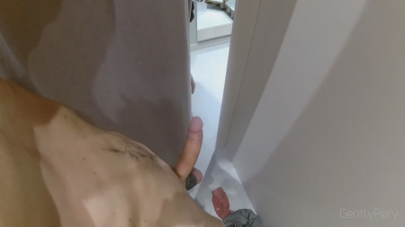 Эксгибиционист зная о приходе уборщицы принялся гонять шкурку