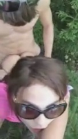 Настюха снимает как ее ебет Алекс прижав к дереву