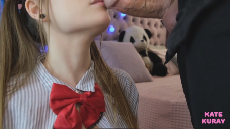 Зумеры умелые пошли. Молодая представительница прекрасного пола уселась под членом товарища, облизнулась и начала делать свою работу для видео. Хорошо сосать она научилась уже очень давно, так что на опыте прекрасно понимает как нужно себя вести, например, стонать для любимого, чтобы его оргазм не задержался, а яйца молниеносно набухали от возбуждения. Красотуля помогает маленькой ручкой, слегка, даже незаметно, подрачивая напряженный ствол. Одежда неспроста такая с бантиком, парень любит представлять подружку школьницей, хотя заведение оба окончили несколько лет назад. Еще немного и под тихие стоны он спустил девочке на язычок.