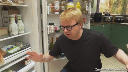 Молодая супруга вновь застала прячущимся в холодильнике дебильного мужа. Он последние несколько лет то и дело только жрет, иногда работает, срет и спит. Никаких сексуальных потребностей у обмудка удовлетворить не получается. Раздевшись, брюнетка в сексапильных черных чулках раскидала по полу как в сказке кусочки сырной нарезки, которая привела куколда к любимой с двумя неграми, а так как он еще и слабый, то даже выгнать их не сможет. Пришлось лицезреть измену с негритосами, сумевших в течение получаса насладить похотливую жену хозяина, в обе дырочки одновременно. Очкарик все крутился рядом, корча рожи недовольства.