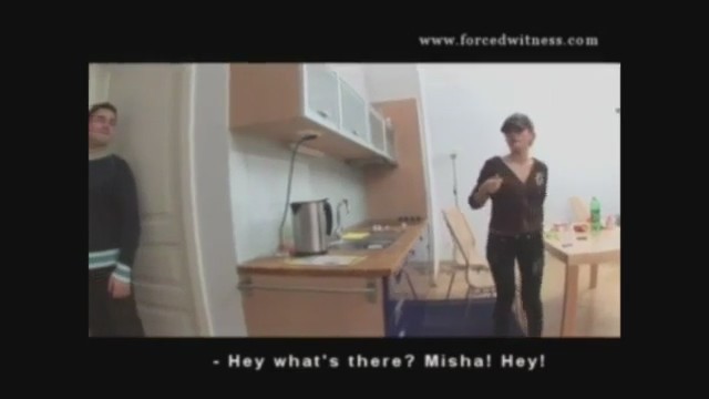 Двое граждан расселись на кухне, попивая кока-колу да пожирая чипсы, которые к тому моменту успели кончиться силами подруги. В дверь настойчиво постучали. Не успел паренек распахнуть дверь и поздороваться со знакомым, тот его впихнул внутрь, связав веревкой. Девушка заволновалась, побежала скорее в коридор. Ей тут же досталось: сняли штаны, поставили к столу раком, засандалили по самые помидоры, а лежащему на полу дрищу оставалось только смотреть и дергаться. О, момент кончины насильника самый эпичный в видео. Надрочив до оргазма свой хуец, незваный гость как следует полил разлетевшейся спермой лицо, волосы и пол. Чем так насолили ему друзья? Наверное, заняли денег, не собираясь отдавать.