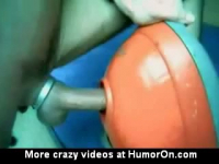 Сосущий бедолага на видео лишился девственности. С него вытащили трубу и вместо нее извращенец засунул свой хуй с эрекционным кольцом на яйцах и основании. Немного дав втянуть головку, онанист реально принялся трахать дырку, а жужжащий аппарат напрягаться сильнее с каждым закупориванием отверстия. Но не это самое страшное. Дырку пылесоса обкончали теплой спермой, стекающей по пластиковому "рту карпа".