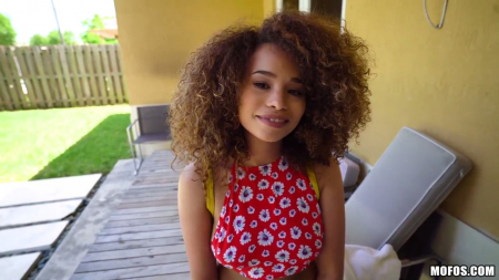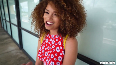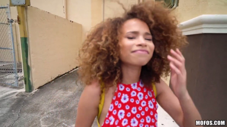 Буквально в нескольких метрах в джинсовых шортиках вышагивала кучерявая девушка. Ее пышная прическа привлекает вообще всех, редко такую шевелюру увидишь, но для мулаток - это норма вещей. Разговорив незнакомку, мастер комплиментов предложил немного еще поболтать, но в другом горизонте - он дает деньги, она выполняет небольшие задания. Конкретно снабдив девушку деньгами, мужчина получил что хотел - развел ее на потрахаться. Хоть это и улица, они оба скрыты высоким забором. Фигурка негритянки-полукровки отменная, стоила каждого потраченного цента.