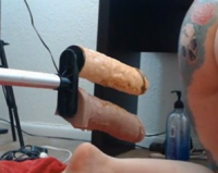 Телка с татуированными ногами расположилась на полу возле веб-камеры. В ее арсенале нет особенно много различных игрушек, но есть две ее любимые - резиновый мужчина с перманентным стояком и частью торса, а также машина для секса: не устающая, не знающая жалости, только трах обеих дырок, только хардкор. Выставлять необходимый темп позволяет пульт управления, который подведен проводом совсем рядом к неизвестной доселе онанистке. Причем один дилдак с легкостью превращается в машину двойного проникновения с новым переходником на два фаллоса.