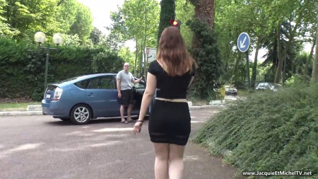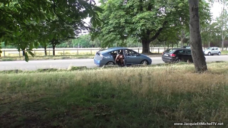 С виду семейная парочка ничем не отличается от всех остальных, кроме одного нюанса - мужу нравится смотреть как супругу трахают другие парни, а ей просто нравится заниматься сексом, не особо важно с кем. То есть это типичный союз куколда и сексвайф. Он самолично на toyota prius отвез их месту ебли, но уже по пути чувак на заднем сидении развлекался со светящейся от счастья женщиной. Француз стоял все время рядом и смотрел, как сперва любимая отдыхала в машине, потом на природном ландшафте. Ебырь кончил на лицо, бисексуал сразу после этого дал пососать жене свой маленький член и после двух херов у нее во рту вдобавок поцеловал.