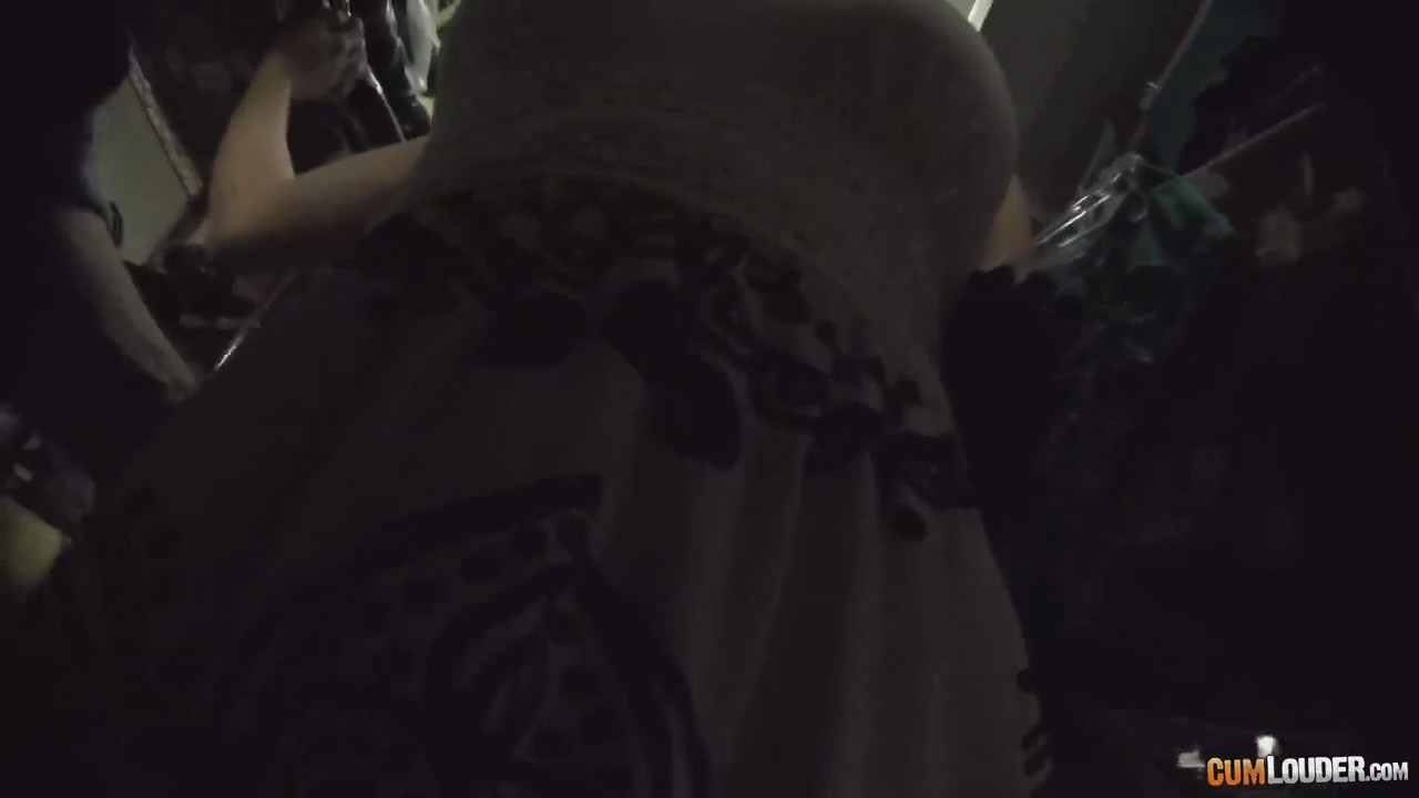 Паренек приехал на двухколесном товарище на свидание с девушкой. Они договорились вместе попить пивка на открытом воздухе, а потом отправились затариться в местный супермаркет. У него была с собой камера с самого начала, которой он снимал скрытно, но латинка оказалась такой же повернутой, как и сам парнишка. Они взяли сексуальный костюмчик, запрятались в переодевалке и занялись там грязным сексом, стараясь не издавать привлекающих внимание сотрудников звуков. Хорошо на них пивко подействовало. Но хоть за костюмчик заплатили и сразу проверили как он в деле.