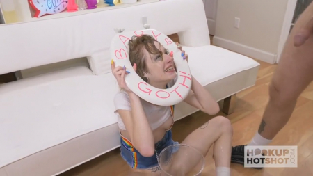 Симпатичная бедняжка аж вздрогнула в гардеробе, когда ее позвал молодой человек заявивший, что очень хочет поссать. Послушная малышка сразу схватила большой сосуд, подставив его под себя, открыла ротик и дала обоссать свое лицо, заодно попробовав жидкость на вкус. Дальше пузатый парень останавливаться не стал и жестко оттарабанил ее глотку хуем, аж до блевотни. Хорошо хоть она ничего не ела, был бы пиздец. Но только писсингом дело просто не могло закончиться: чувак грубо отпорол чикулю в сраку, потом снова в горло, потом еще раз поссал ей на лицо, которое в итоге обкончал.