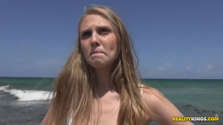 Прикинувшись репортерами взрослого канала группа из нескольких девушек, оператора, водителя и парня в машине отправилась на поиск открытых для общения жительниц солнечного города, готовых за деньги надеть предложенный набор бикини и намочить его. Кстати, он становится прозрачным. На это согласилась рыженькая, еще была афроамериканка, симпатичная худая латинка, показавшие сиськи и под конец попалась молоденькая светлая девушка, находившаяся одна на берегу. Она довольно сговорчивая и через несколько минут уже сидела с компанией в фургоне. По пути незнакомка согласилась продемонстрировать маленькие сосочки и дать кучерявому парню в красивый пирожок. Так получилось, что его смуглая спутница присоединилась к развратному процессу.