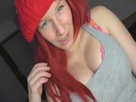 Пухленькая тетенька из Германии надела ради разнообразия красную шапочку, хотя в помещение +25. Как всегда первым делом она вывалила сиськи из выреза серой футболки и начала свою соло мастурбацию на удобном стуле. Только сейчас ей в голову пришла идея заглянуть в ящик стола, где есть различные флакончики, хоть и полностью гладкие, но они тоже могут приносить удовольствие их хозяйке. Помощника для записи нет, поэтому ракурсы получаются такие, какие получаются и порадовать грудастая шлюшка не забывает крупным планом, доведя опытной, достаточно шустрой рукой себя до оргазма.