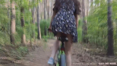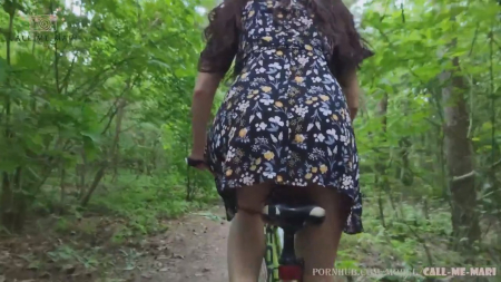Парочка выехала покататься на велосипедах. Парень снимает свою девушку в платье, придерживая скорость сзади. Но просто колесить по городу не так интересно, как примотать немаленький дилдо к сиденью велосипеда и поехать в лес, где дорожки очень бугристые, с корнями и прочим, что может заставить приподнявшую платье жопку стонать от кайфа. Малышка не сильно стесняется прохожих и ей абсолютно плевать, что ее слышно окружающим, даже тем, кого не видно в кадре. Одна только мысль про дилдо на сидушке велика и общественное место очень заводит порнхаб-модель, у которой ножки устали стоять на полусогнутых и одновременно крутить педали.