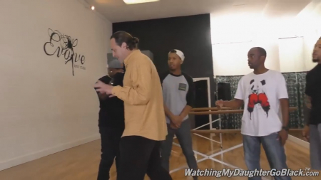Очередной утренний конфликт разгорелся между мужчиной и его приемной дочкой, которая не верит в успех танцевальной школы. Кроме того оказалось, что он сильно задолжал пятерым черномазым пацанам, которые в этот момент пришли за своими деньгами. Почти каждый шлепнул девушку по заднице в спортивных трусиках, начав наезжать на старика. Мямля чуть не огреб, но в конфликт вмешалась падчерица, попросившая отца отойти в сторонку, пока она разбирается с большими черными членами. Молодую шваль откупорили вагинально и орально, накончав в широко открытую пасть с высунутым как у собаки языком. Даже батя, стоявший позади и трогающий себя за хер, решил кончить в рот дочки последним.