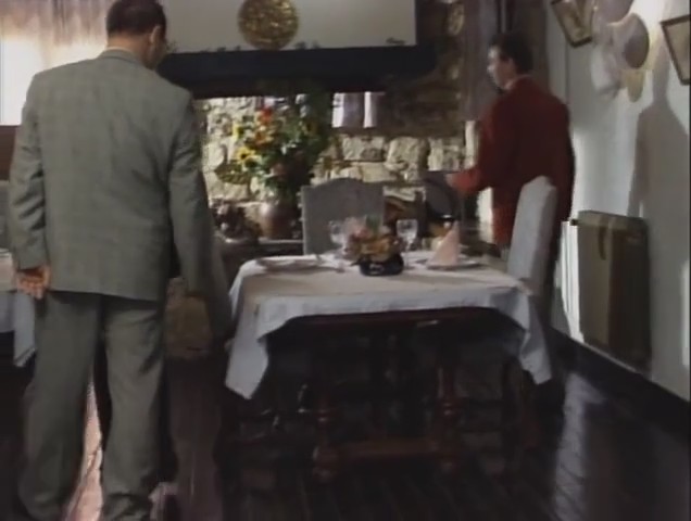 Туристку с картой и фотоаппаратом заметили двое мужчин в дорогих костюмах. Посоветовавшись, они приняли решение отправить одного для знакомства с блондинкой. Она с радостью приняла неожиданное предложение посидеть в ресторане хозяев, когда там нет гостей, прекрасно понимая, что ее просто разводят поебаться, хотя меню зачем-то дали пощупать. Конечно, шведка согласилась. Потом блонда узнала, что ебать будут даже не двое, а трое взрослых мужиков, что стало поводом обрадоваться и дать на столе. После попки ретро шлюхи члены направились на ее туповатое лицо, обконченное одновременно с трех болтов.