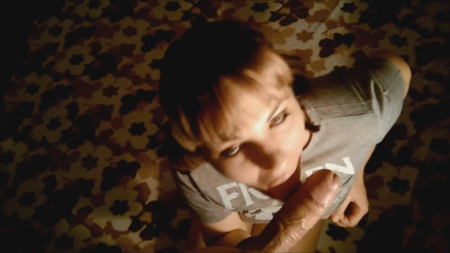 Красивая девочка с двумя небольшими хвостиками оставила парня у себя дома, родные разрешили ему переночевать, если молодые будут тихо себя вести. Чтобы не ослушаться родителей, симпатяга поставила возле кровати бойфренда и начала ему сосать, поласкав перед этим сиюминутно киску и, приподняв футболочку, потрогав набухающие соски. Минет будет проходить под приглушенным светом, но его и качества картинки достаточно, чтобы ощутить от первого лица как хорошо молодому человеку давать на клык красавице, кончив ей в ротик из перекрытого эрекционным кольцом ствола. Как она мило улыбается, когда видит и слышит как любимый кончает!
