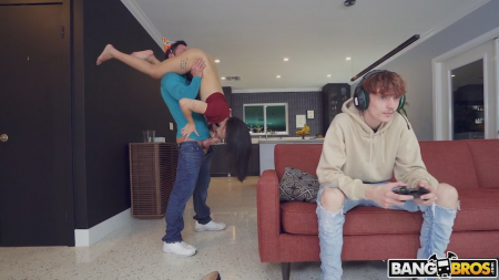 Счастливая ячейка общества пришла в гости к товарищу худощавого паренька, который предложил вместе отпраздновать день рождения друга. Их приняли с открытым сердцем, но маленькая искра промчала перед узкими глазами девушки. Это будто любовь с первого взгляда в мускулатуру нового знакомого, который был очень обходителен и включил поиграть приставку гостям. Пока хозяин тусовался на кухне, к нему прискакала азиатка, решившая во что бы то ни стало отсосать его достаточно массивный хуй и все это за спиной собственного бойфренда, который не отвлекался до грустного момента, пока не пошел посмотреть что делает его пассия.