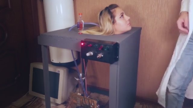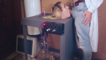 Ученый, двигающийся в реально правильном направлении мысли создал чудо-аппарат с несколькими тумблерами и главной вишенкой на торте - женской головой с пухлыми щеками. Запустив сбоящую технику, он тут же достает член из джинс и пихает в рот головешке, которая, облизываясь, начинает выполнять свое предназначение. Как не пихай - штуковина не пиздит и не кашляет (еще постанывает), только двигать телом приходится, но, может быть, в следующих версиях добавится новое. А сейчас кандидат в получение важной премии накончал на язык и отключил технику до следующего раза.
