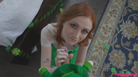 Сперва сводный братик не оценил смысл наряжать комнату ко дню Святого Патрика. Сестра все облепила трилистниками, сама нарядилась в зеленое и создала ирландскую праздничную атмосферу. Парню захотелось как-нибудь подшутить и он проткнул стоячим хуем лепрекона, когда как раз вернулась сестра. Шутка тупая, конечно, но рыженькая сучка уже возбудилась и потрогала горячую плоть. Ей так сильно захотелось, чтобы она оказалась внутри, что ротик сам сделал стояк более твердым, а рыжая лоханка сама запрыгнула на брата. В этот день, кстати, смягчается пост, разрешено пить алкоголь, ну и сестру трахнуть не грех.