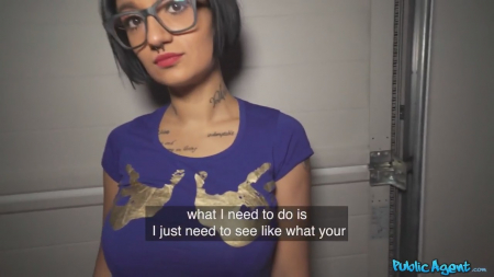 Оператор встретил одиноко стоящую под дождем незнакомку в очках, которая была не против пообщаться пока она ждет друзей. К ее сожалению, они вряд ли придут на встречу из-за погодной катастрофы, но ничего - есть этот парнишка, предложивший подзаработать чутка денег. Татуированная француженка согласилась скрасить свой отпуск в чужой стране трахом с классным собеседником и ничего страшного, что вместе адекватной постели он привел ее в какой-то гараж, хоть и вычищенный до блеска, да еще и кормилицу обкончал.