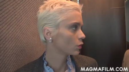 Красивая короткостриженная сотрудница-ассистентка крупного офиса заскучала на работе. Стало как-то тоскливо без мужского внимания. Тут ей на глаза попадается мужчина, который попытался уехать на лифте, но тот не работал, потому пришлось подниматься в кабинет пешком. Белокурая сучка немного подумала, почесала между ног и пошла за мужиком, зайдя с ним в злосчастный лифт и сделав вид, будто тот снова сломался. Парочка уселась на пол и стала думать как дальше жить-поживать, да и перепихнулась анально. Это, конечно, обрадовало старика, но он очень сильно удивился когда узнал о полной работоспособности лифта, ведь секретутка с упругим бюстом из него просто взяла и вышла.