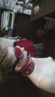 Мужчина приказал своей рабыне с кляпом во рту, в маске и ошейнике не только стоять на коленях, но и на руках, чтобы быть как настоящее животное. Следующей командой собачке стала "идти вперед". Потом она немного постояла голой перед входной дверью и случается совсем для нас неожиданное: раба средь бела дня выползает на четвереньках в подъезд самой обычной панельной пятиэтажки, где есть соседи и прочее. За опоздание она громко получает по заднице, после чего дома разминает ступни хозяина и под конец мастурбирует вибратором, отходящим от дырки дупла до киски и совсем уже в финале теребит клитор до оргазма через салфетку.