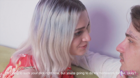 Девчонка на перемене убежала подальше от школы покурить, к старым заброшкам. Туда же пришел ее одноклассник, пошутивший на счет того, что пахнет только от нее, ведь он дымит iqos. Он же и стал инициатором прогула последних уроков: родители уехали на работу, плюс дома есть пиво, которое так любит подружка. Правда хата ей не понравилась, да и дура облила себя. Хорошо, что она вернулась за рюкзаком, где есть платье. В тайне от мамки малявка собиралась пойти затусить. В момент распития слабоалкогольного напитка развязная девка заметила расстегнутую ширинку, вытащив оттуда пенис приятеля и сделав ему минет. Она давно не девственница и может себе позволить заодно прокатиться.