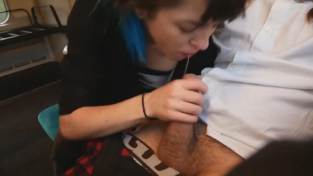 Классная деваха поехала в другой город на поезде вместе со своим спутником, который часто ее записывает на камеру. Сама малыха работает вебкамщицей и очень редко ей удается провести запись в оффлайне. Сделала исключение, так сказать. Оглядевшись по сторонам, она показала торчащие большие соски, просунула руку под штаны, нащупав там мокрую дырочку. Встав на коленочки повернувшись задом, брюнеточка начала фистить влагалище, ей также в этом помог молодой человек, которому она отсосала крупным планом и дала кончить в ротик, все послушно проглотив перед выключением.