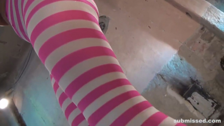 Симпатичная шлюшка перемещена в подвал, где связана опытным господином, который заранее приобрел все, что нужно для извращения над пленницей. Чтобы начать экзекуцию, он разорвал штаны на попке, к груди с большими ареолами сосков присосал пару емкостей, жопку отшлепал плеткой, слушая как после каждого удара рабыня громко стонет и кричит. Но еще громче станет когда та окажется привязанная к стулу, вместо кляпа во рту будет ткань, а во влагалище ручная трах-машинка, запущенная весьма не на маленькой скорости. От такого принудительного кайфа милаха несколько раз кончила и ей уже щель натерло, но впереди еще мука вибратором.