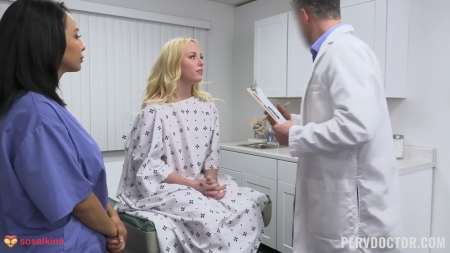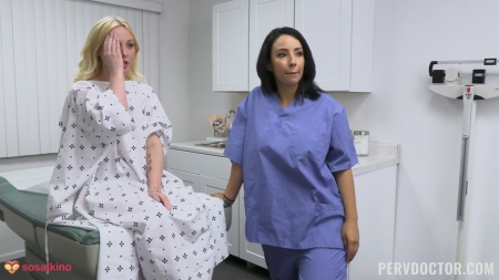 В частную клинику пришла желтоволосая блондинка. Ее встретила ассистентка, давшая заполнить некую анкету с личными данными. Когда все было готово, медсестричка сделала все необходимые внешние анализы и только потом поинтересовалась на что жалуется пациентка. Оказалось, что это очень серьезная проблема с сухостью внизу. Пришлось позвать врача, который попросил помощницу внимательно слушать и стажироваться. Им нужно было провести более глубокие исследования вагины и выслушать о множестве партнеров девушки, с кем та спит. Что ж, есть отличная статистика по данному заболеванию и групповуха с мужчиной и женщиной может помочь. С первых секунд проникновения члена врача стало намного лучше, помощница успевала и пососать и подлизать клиентке больницы, покрутить ее соски.